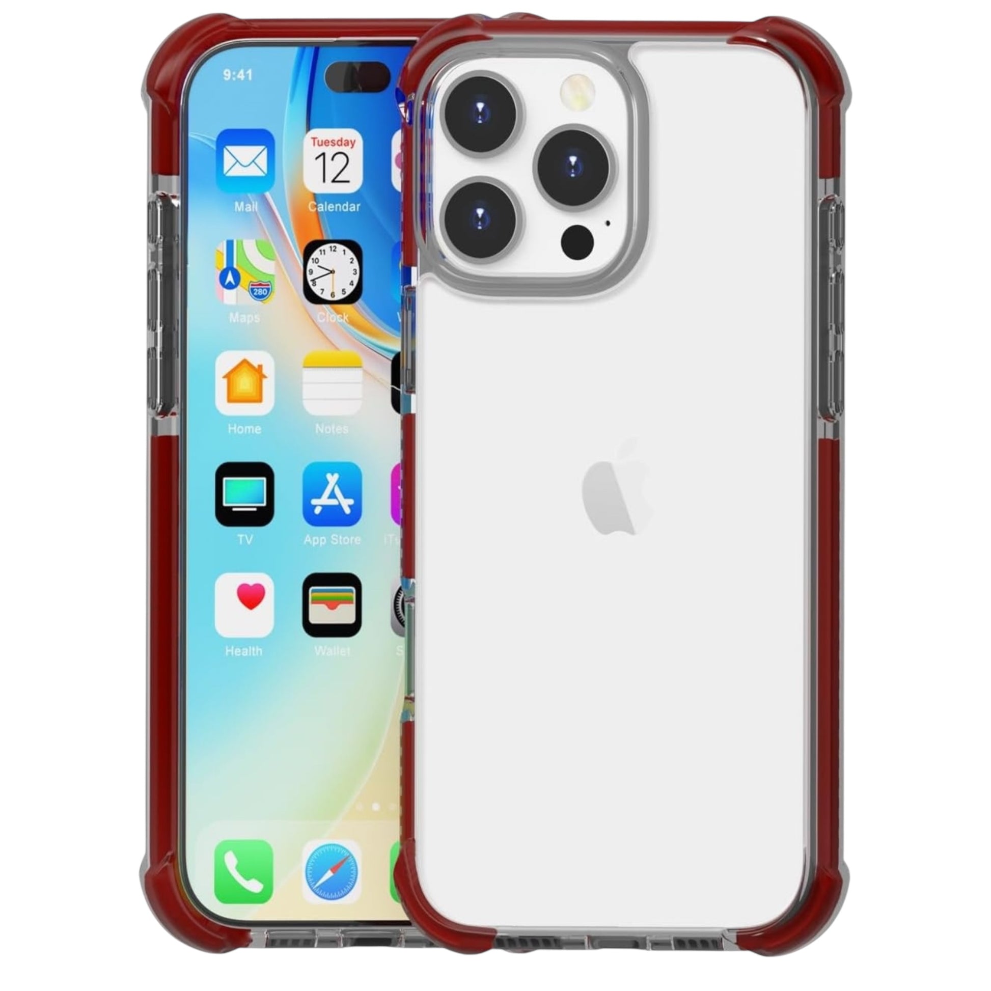 For iPhone 16 Pro - Clear & Dark Red